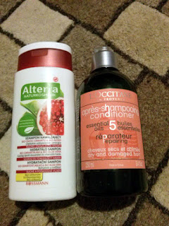 1. Alterra, szampon nawilżający Granat i aloes - lubię ten szampon i często wracam do niego. Ładnie pachnie, dobrze myje włosy, nie plącze ich. Wrócę.